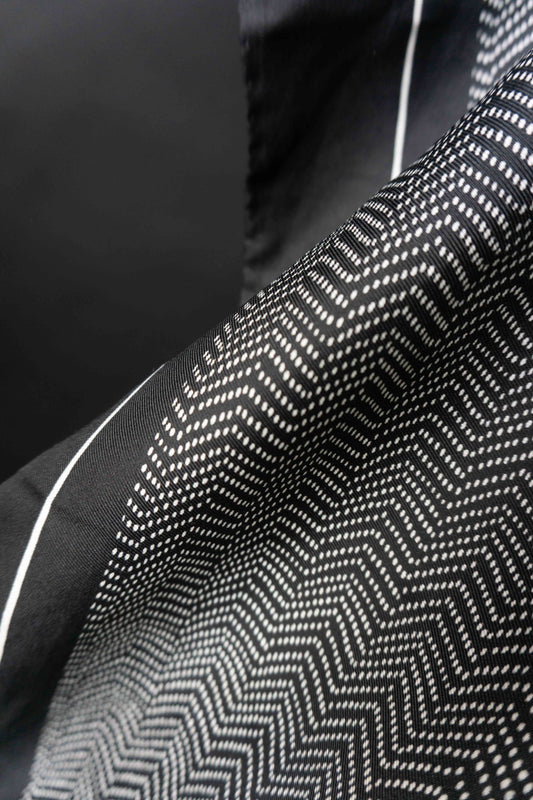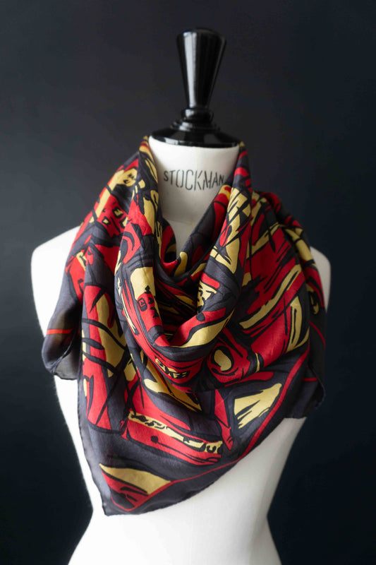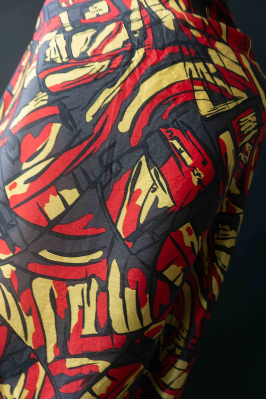 XXL-Seidentuch mit abstraktem Muster in Grau, Gelb, Rot und Schwarz