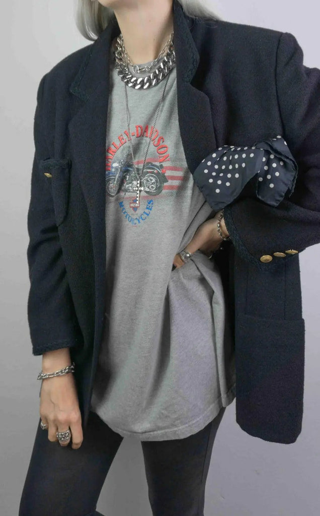 Please note that this is a vintage piece. Signs of wear are inevitable and part of the charm. Major defects are photographed and documented in the description. All products have been cleaned and repaired and/or altered if necessary. The model is size M ( EU38/UK10/Medium) and 5'7 (176 cm) tall. This article is subject to differential taxation according to paragraph 25a UStG, VAT is not shown on the invoice.