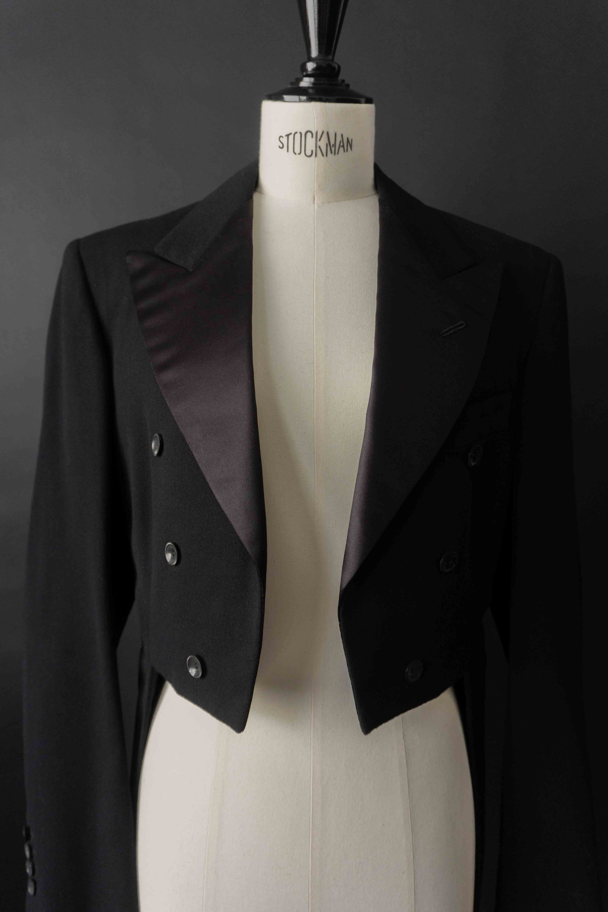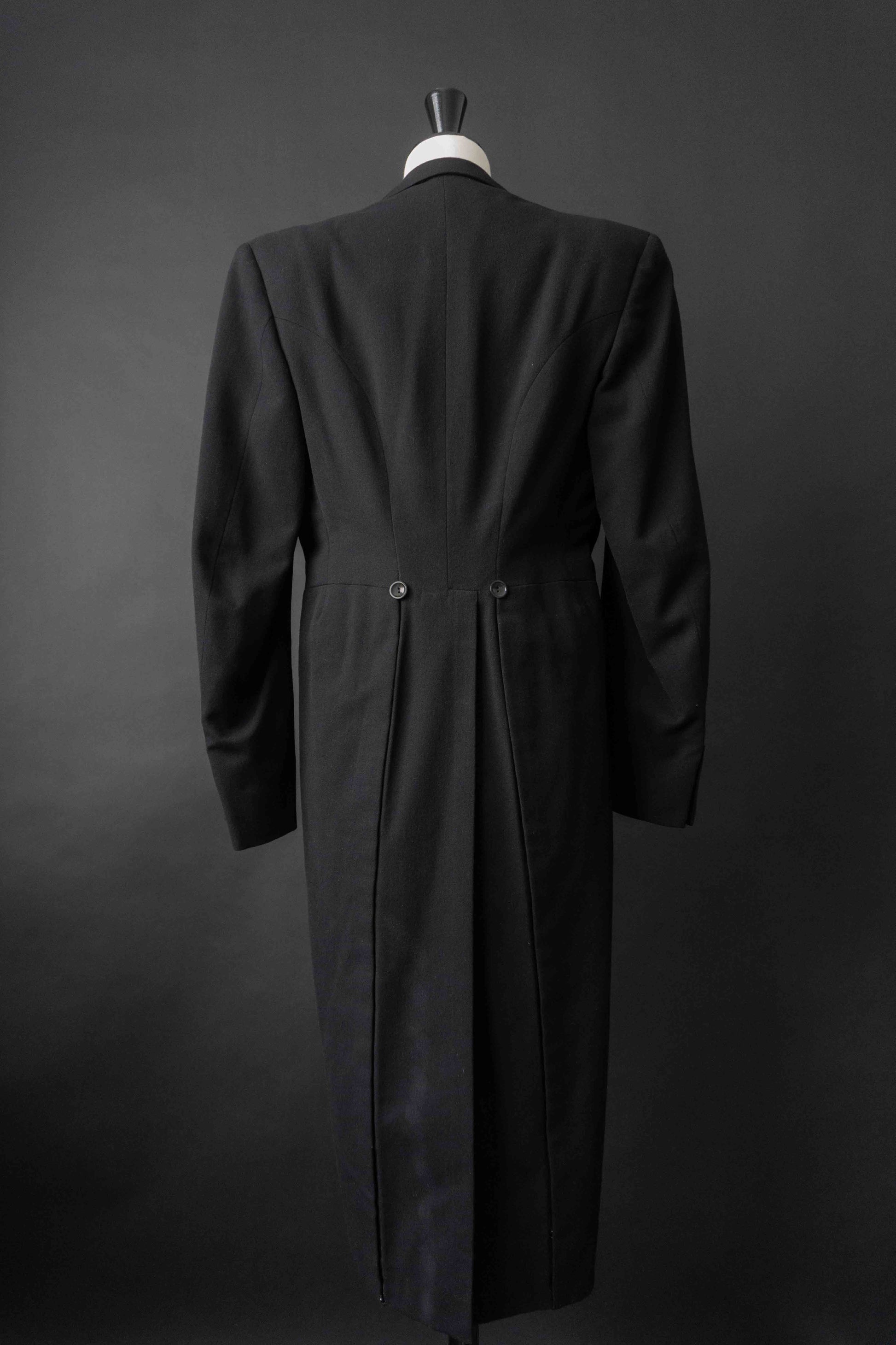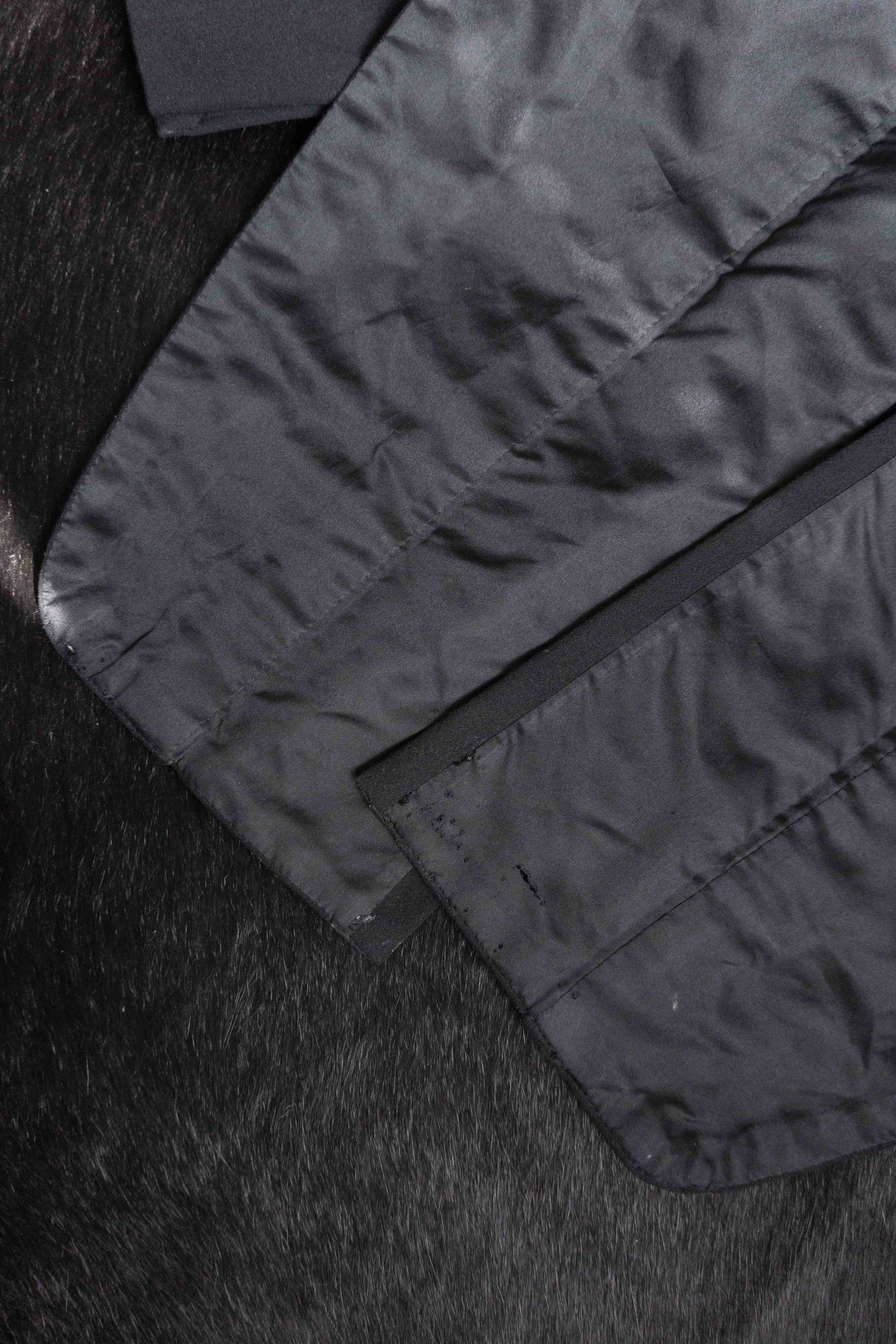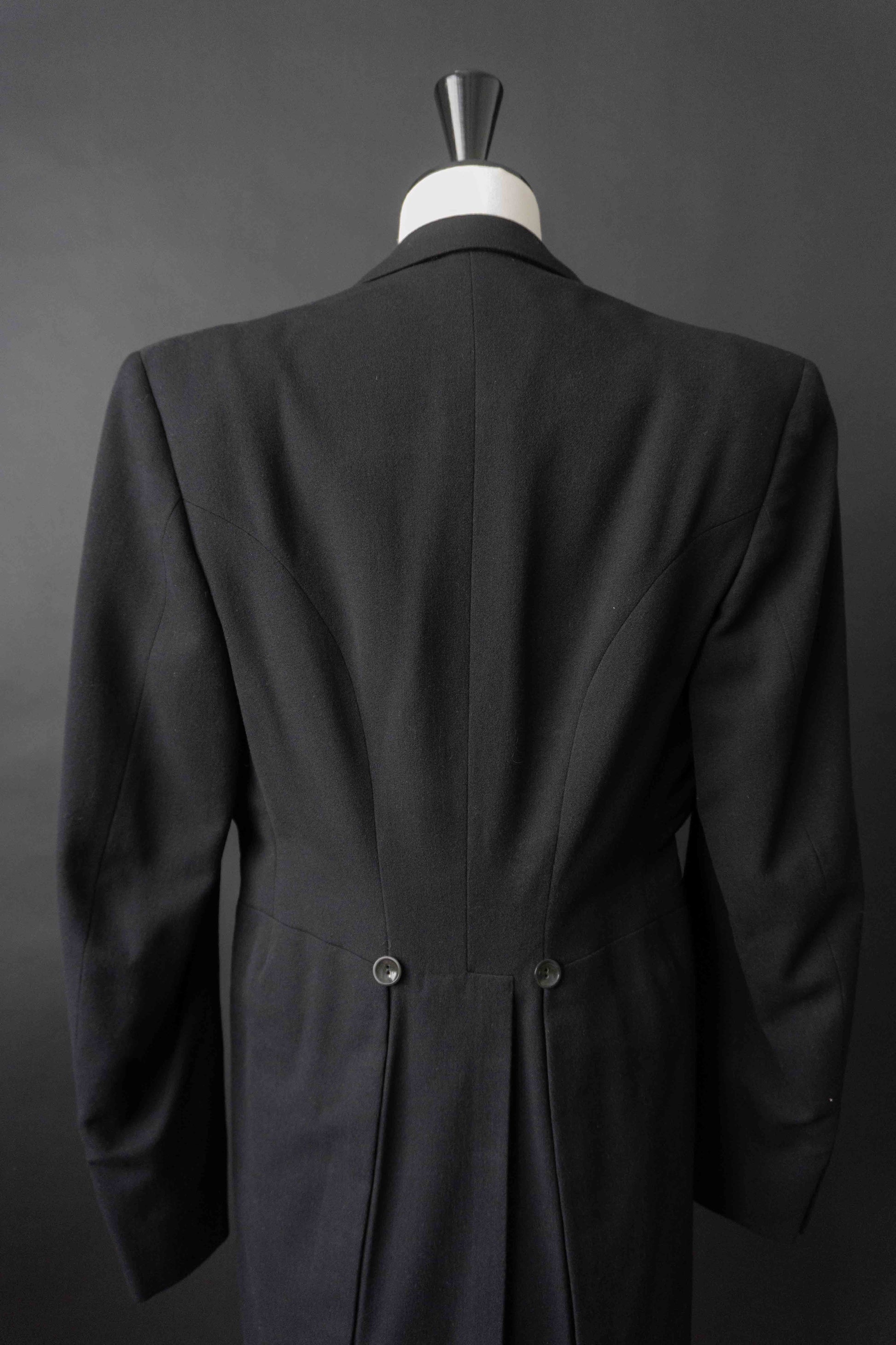 Ein echtes Sammlerstück: Dieser antike Frack ist eine seltene Rarität und besticht durch sein klassisches Satin-Revers, die Frackschwänze und authentische Details. Die leicht getragenen Partien am unteren Saum unterstreichen seinen Charakter. Perfekt für besondere Anlässe oder als stilvolles Statement im Alltag.