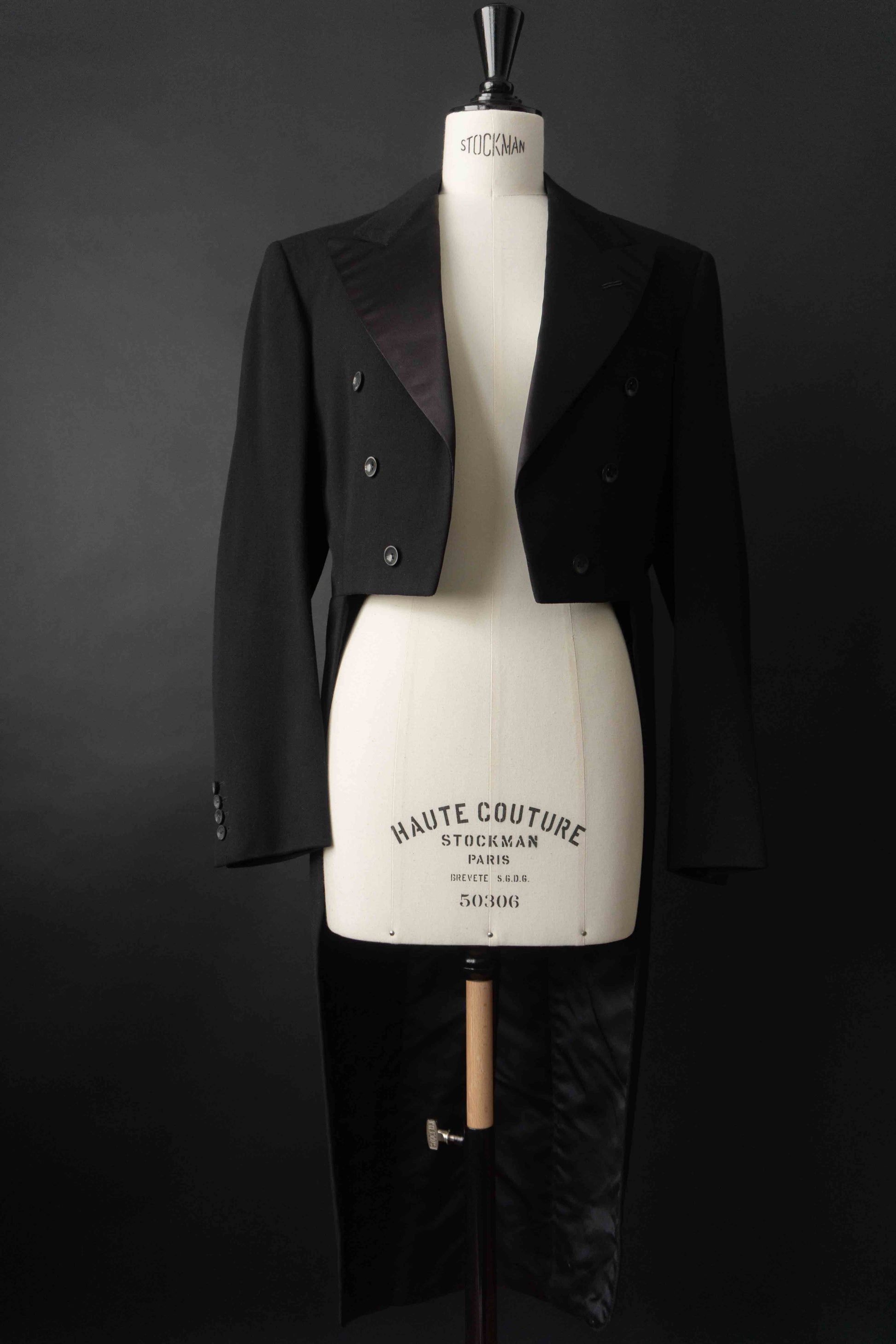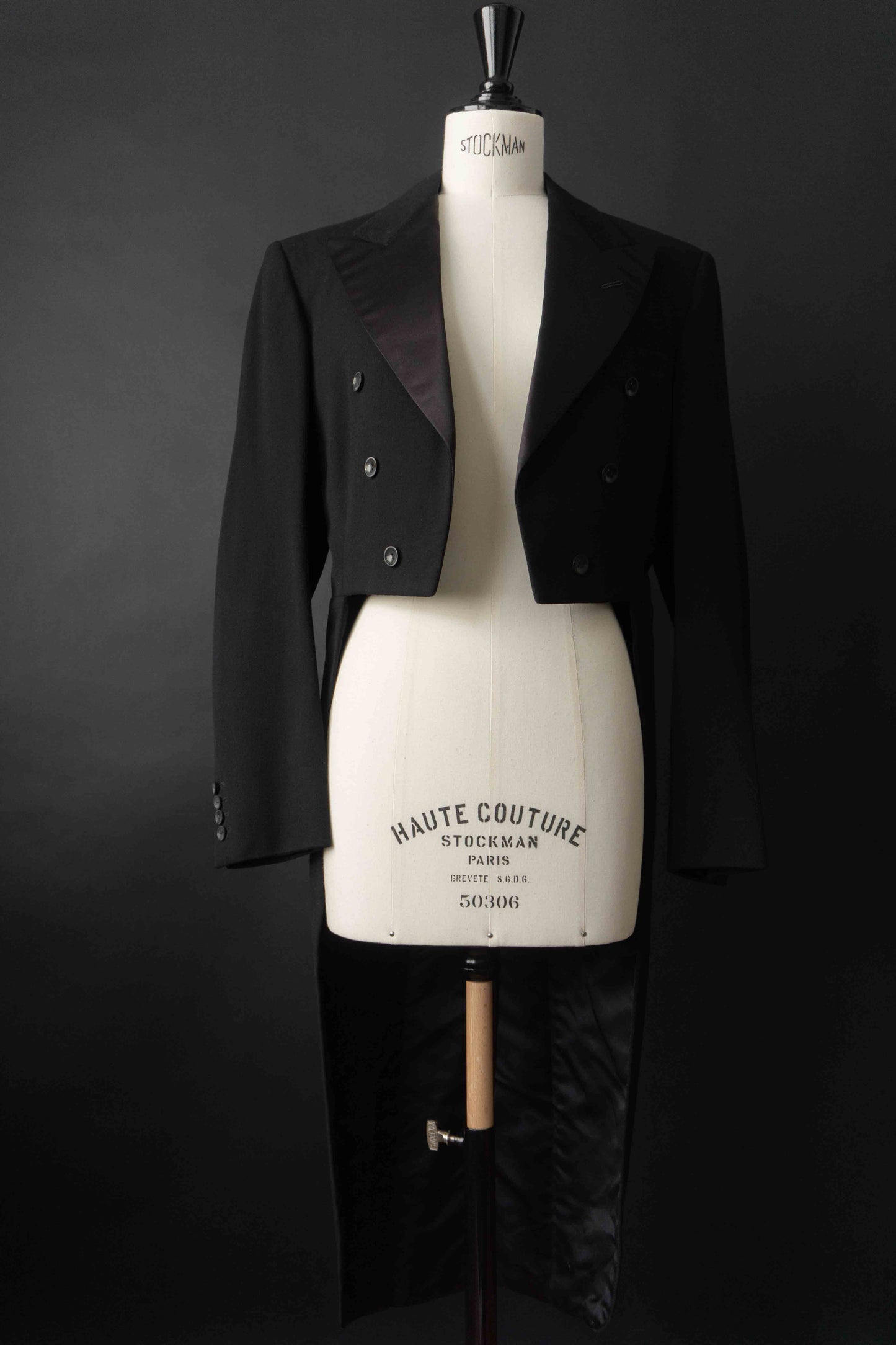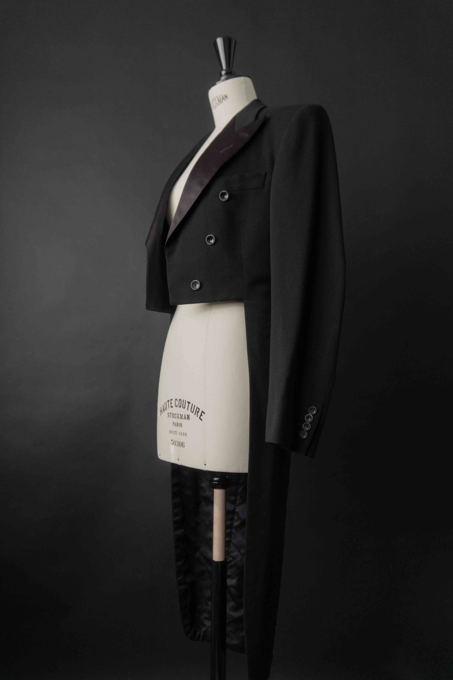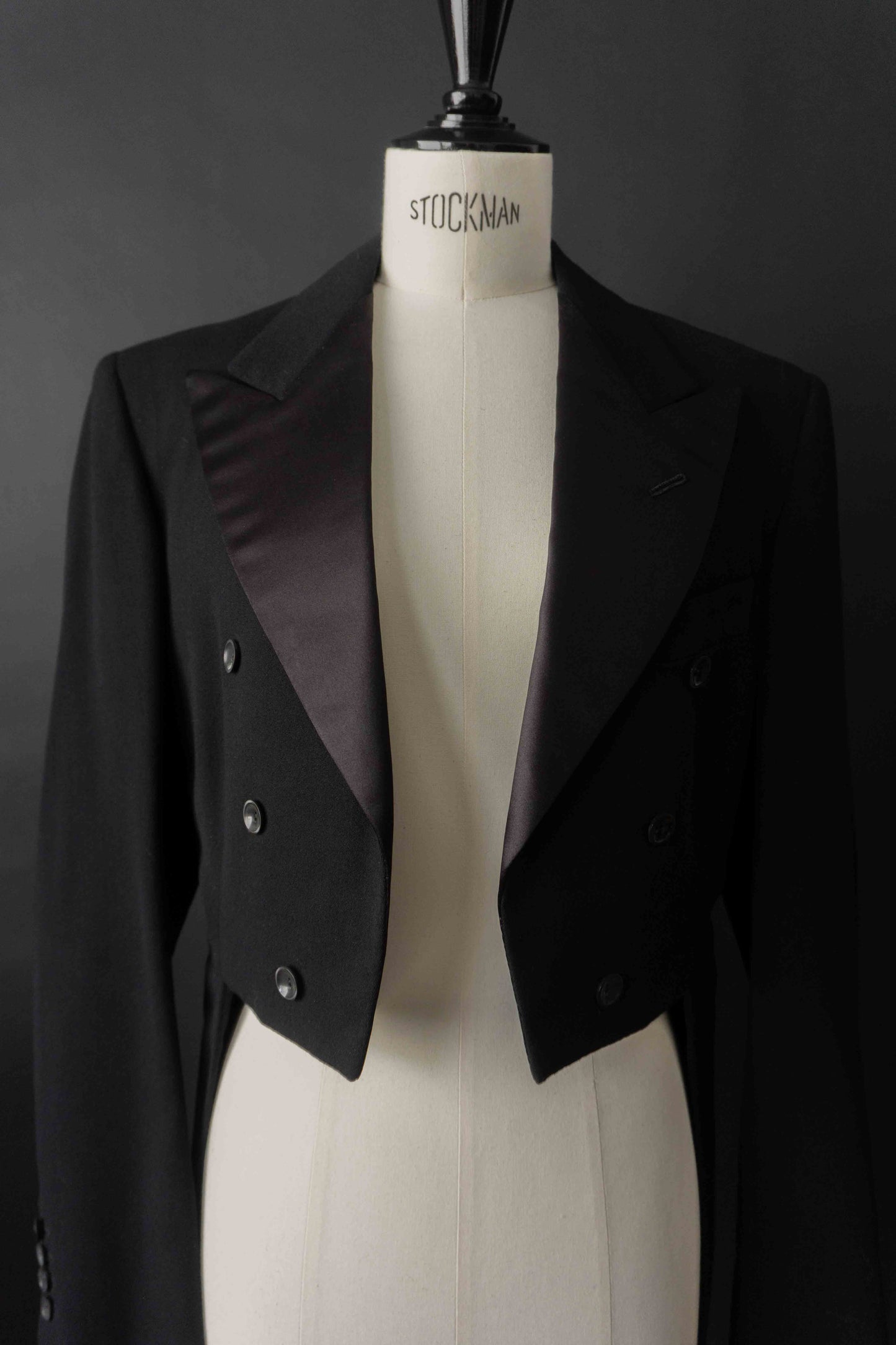 Ein echtes Sammlerstück: Dieser antike Frack ist eine seltene Rarität und besticht durch sein klassisches Satin-Revers, die Frackschwänze und authentische Details. Die leicht getragenen Partien am unteren Saum unterstreichen seinen Charakter. Perfekt für besondere Anlässe oder als stilvolles Statement im Alltag.
