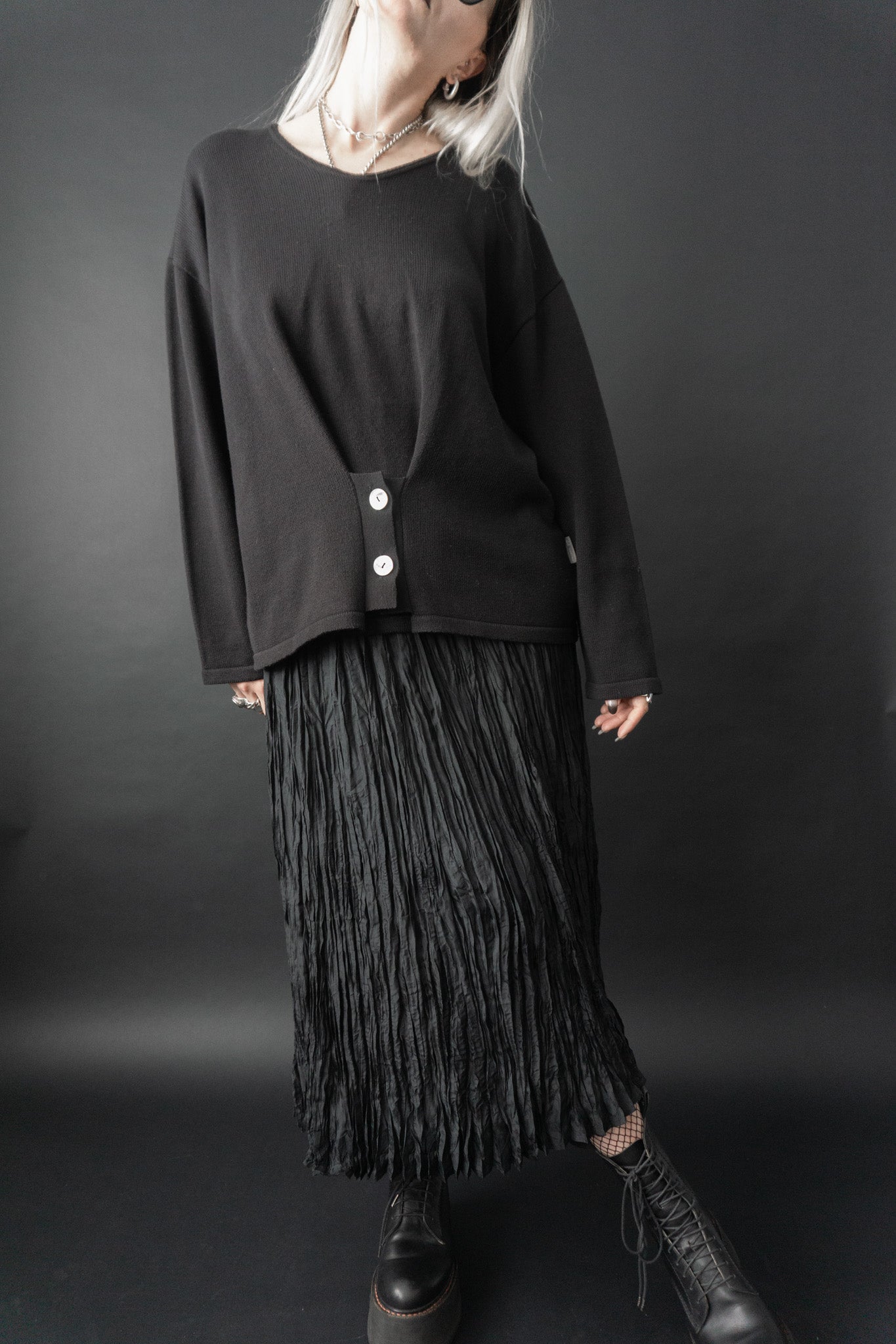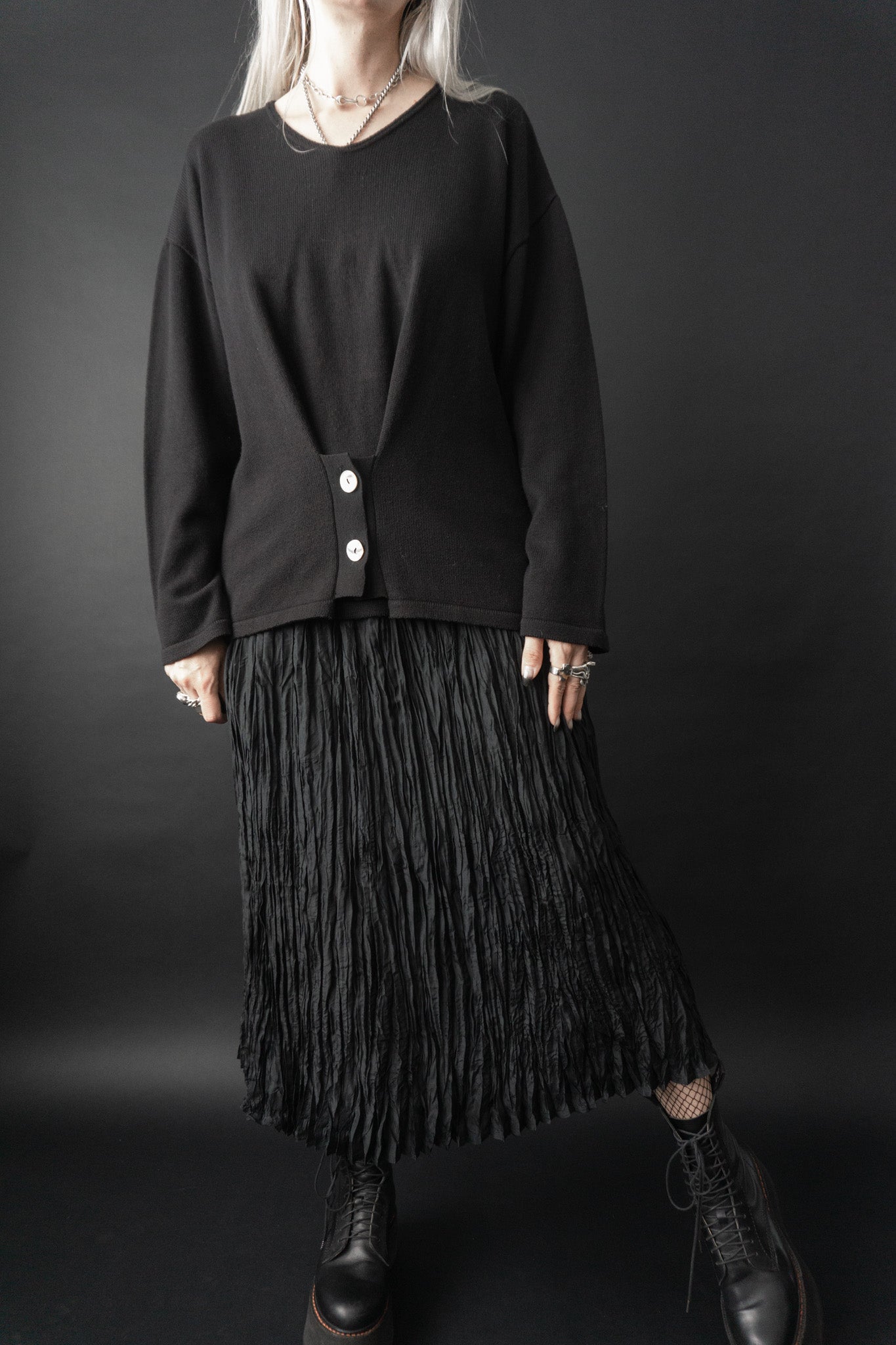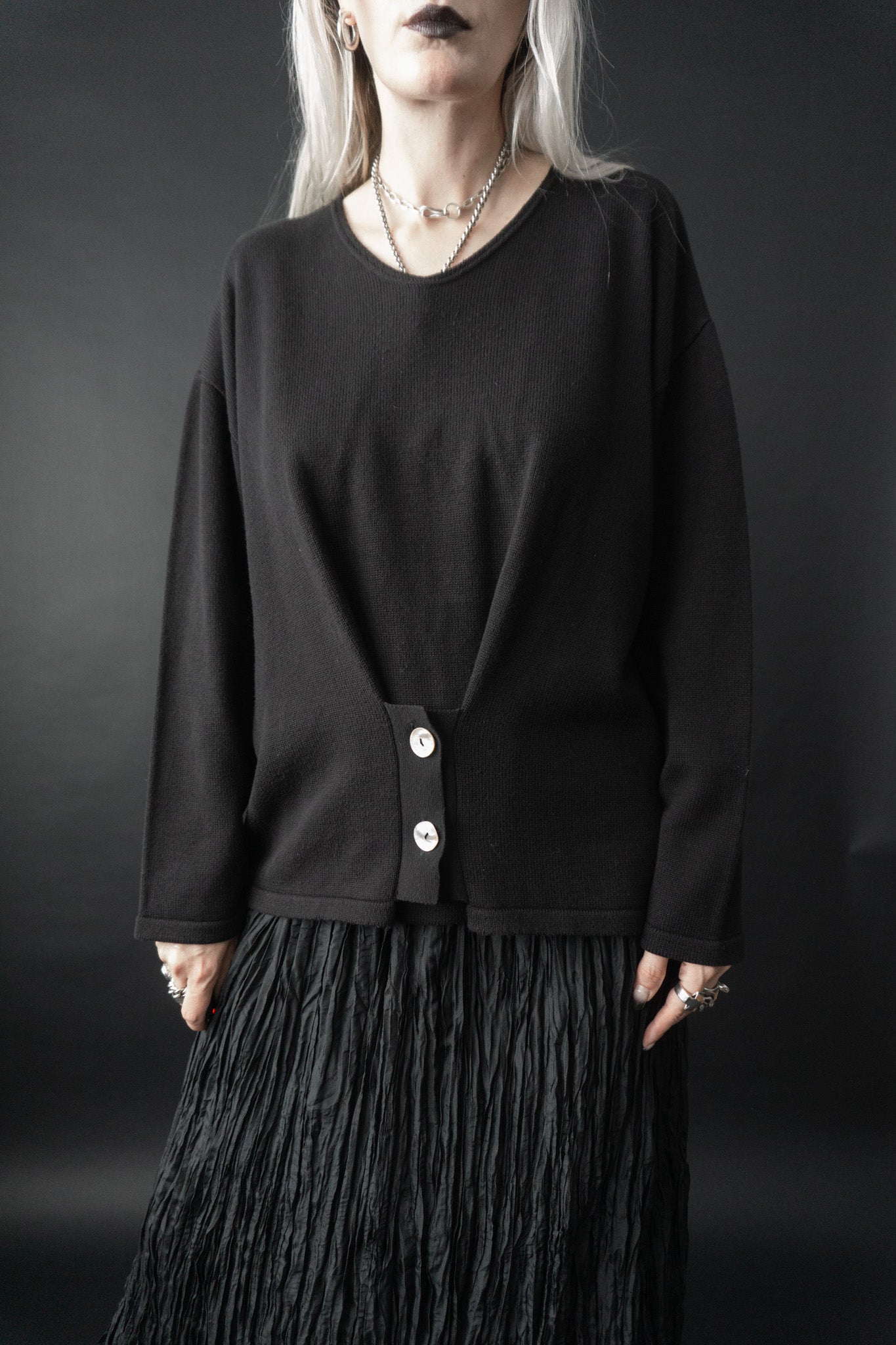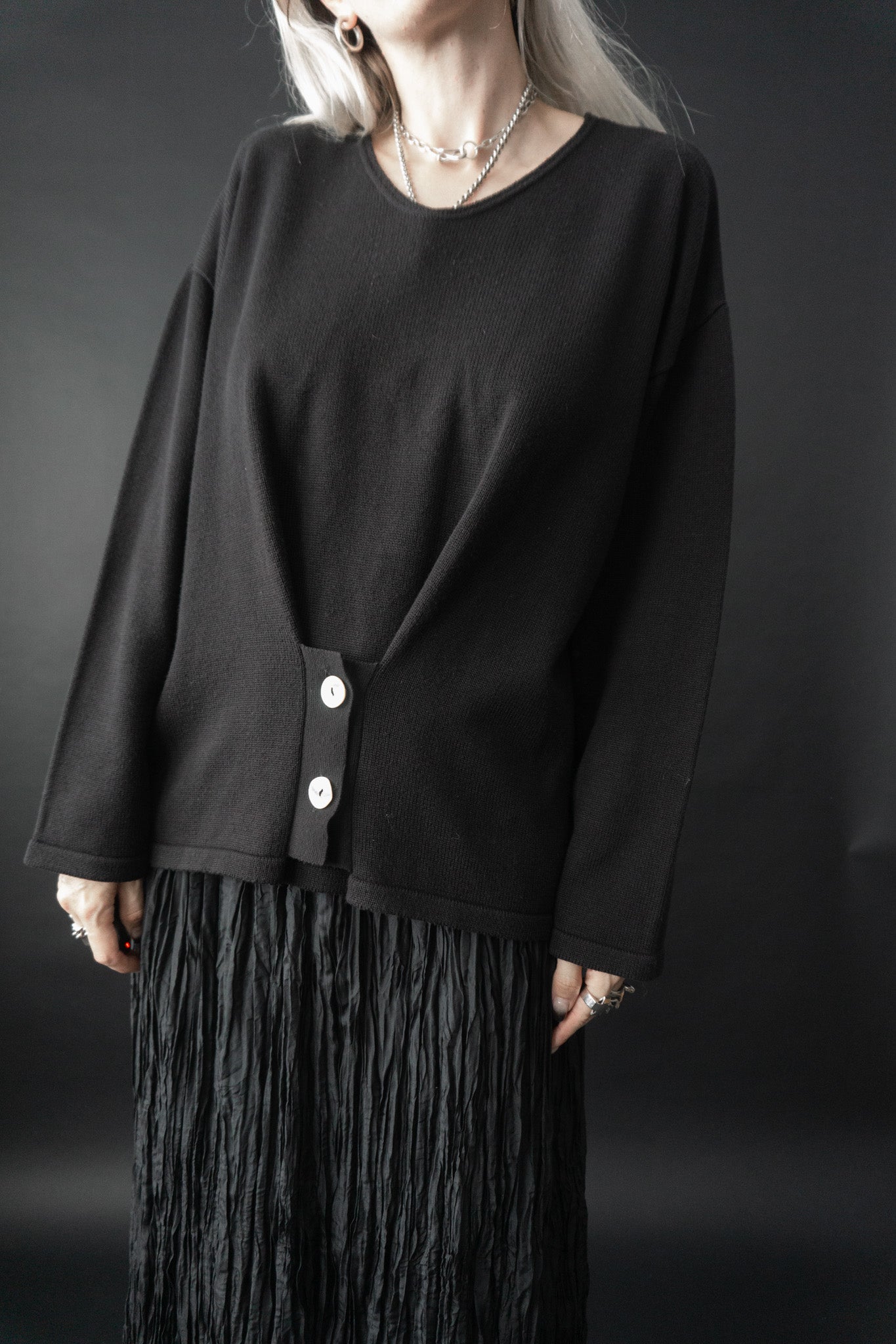 Schwarzer oversized Pullover von Kathrin Aargard mit schönem Knopfdetail auf der Vorderseite.