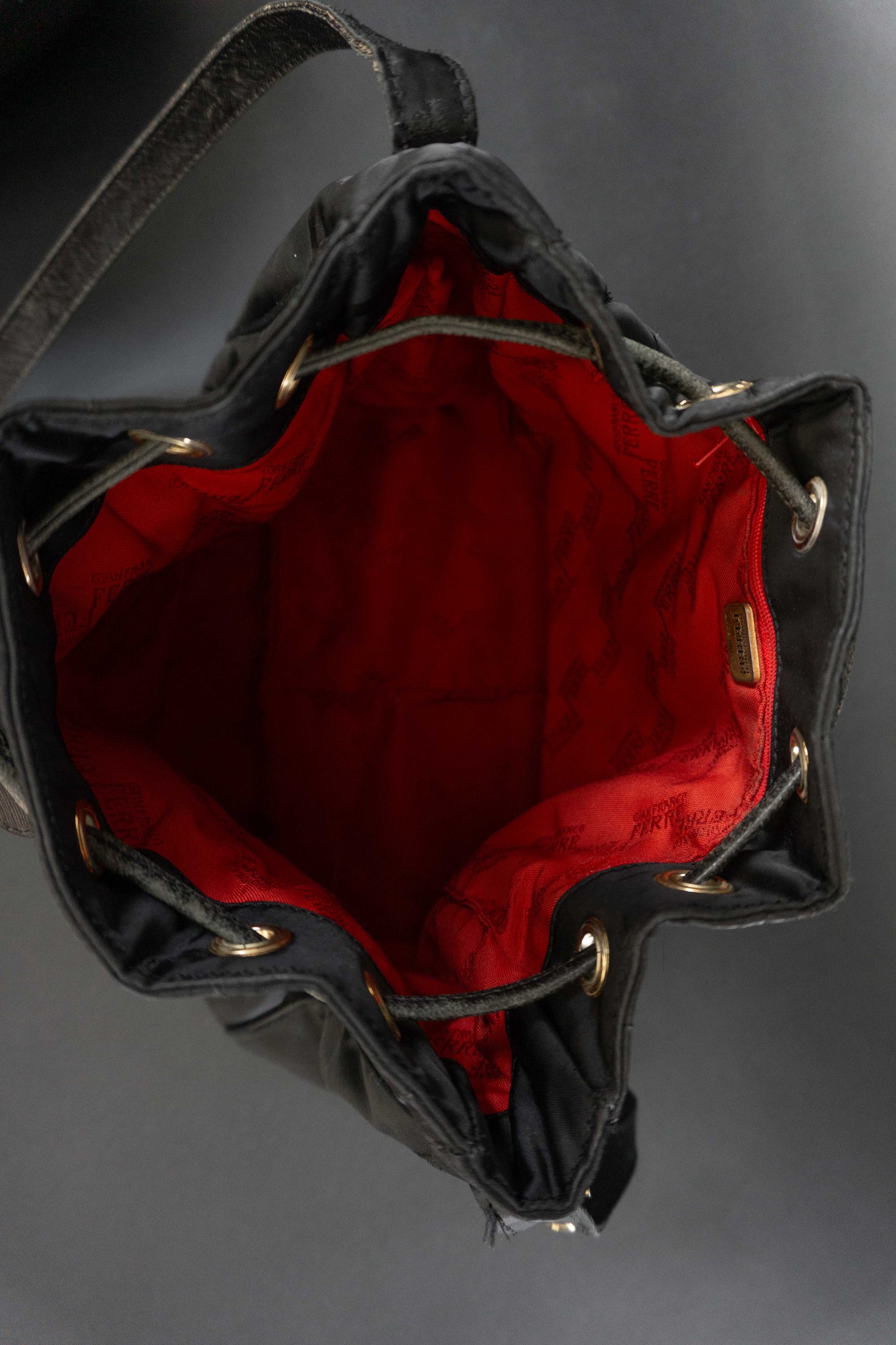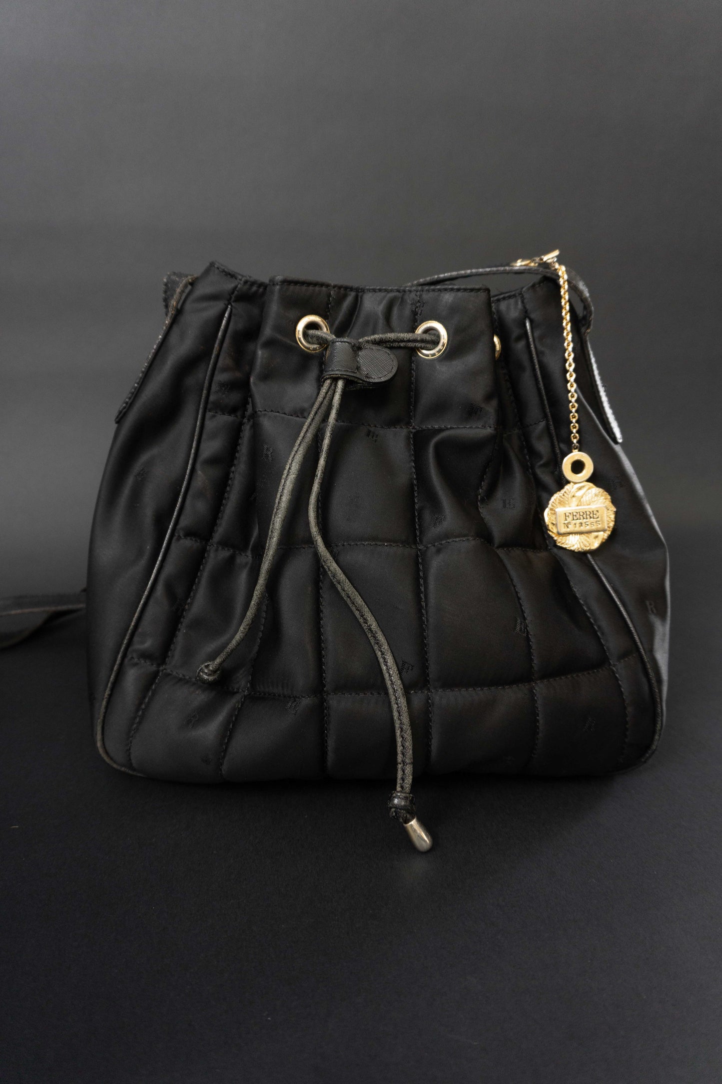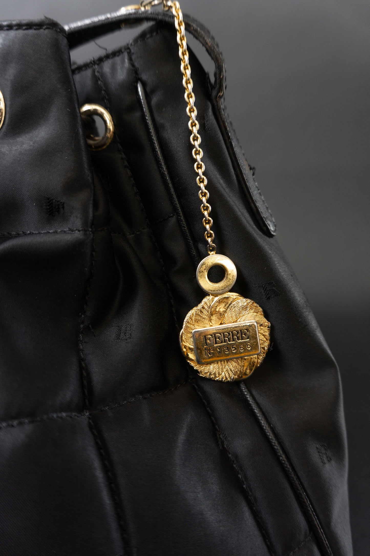 Echte Vintage Gianfranco Ferre Tasche aus den 80er Jahren. Schwarzers Nylon mit Echtleder Elementen. Der Schulterriemen lässt sich in der Länge einstellen. Made in Italy.