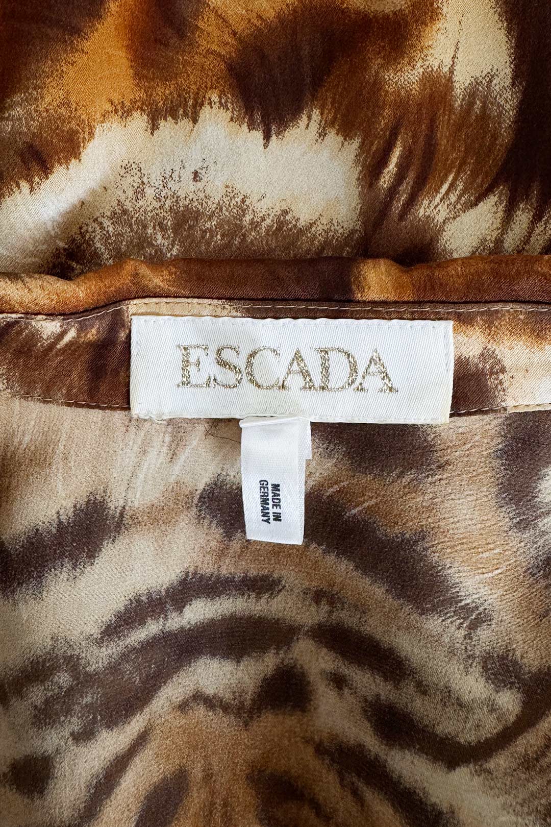 Ausgefallene 80s ESCADA Bluse mit abgefahrenem Tiger Print. Perfekt für den Glamrock Vibe.
