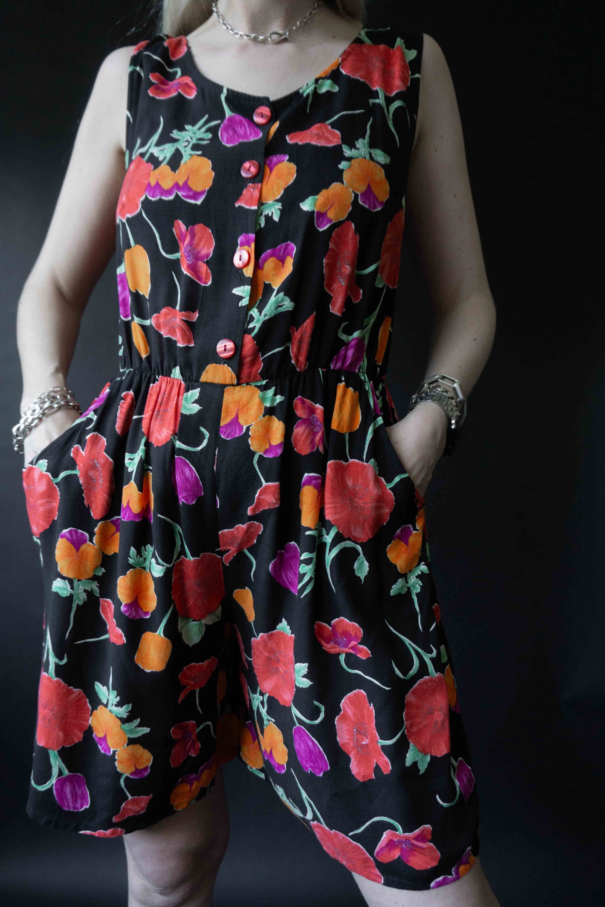 Vintage Jumpsuit mit Blütenprint, S–M