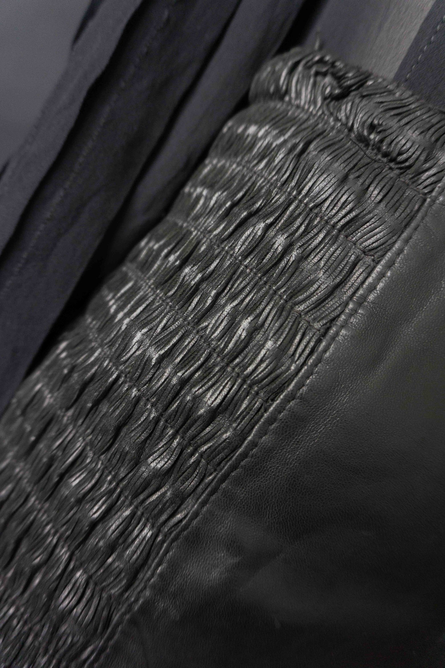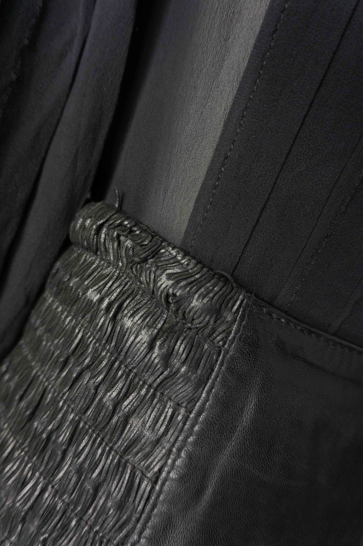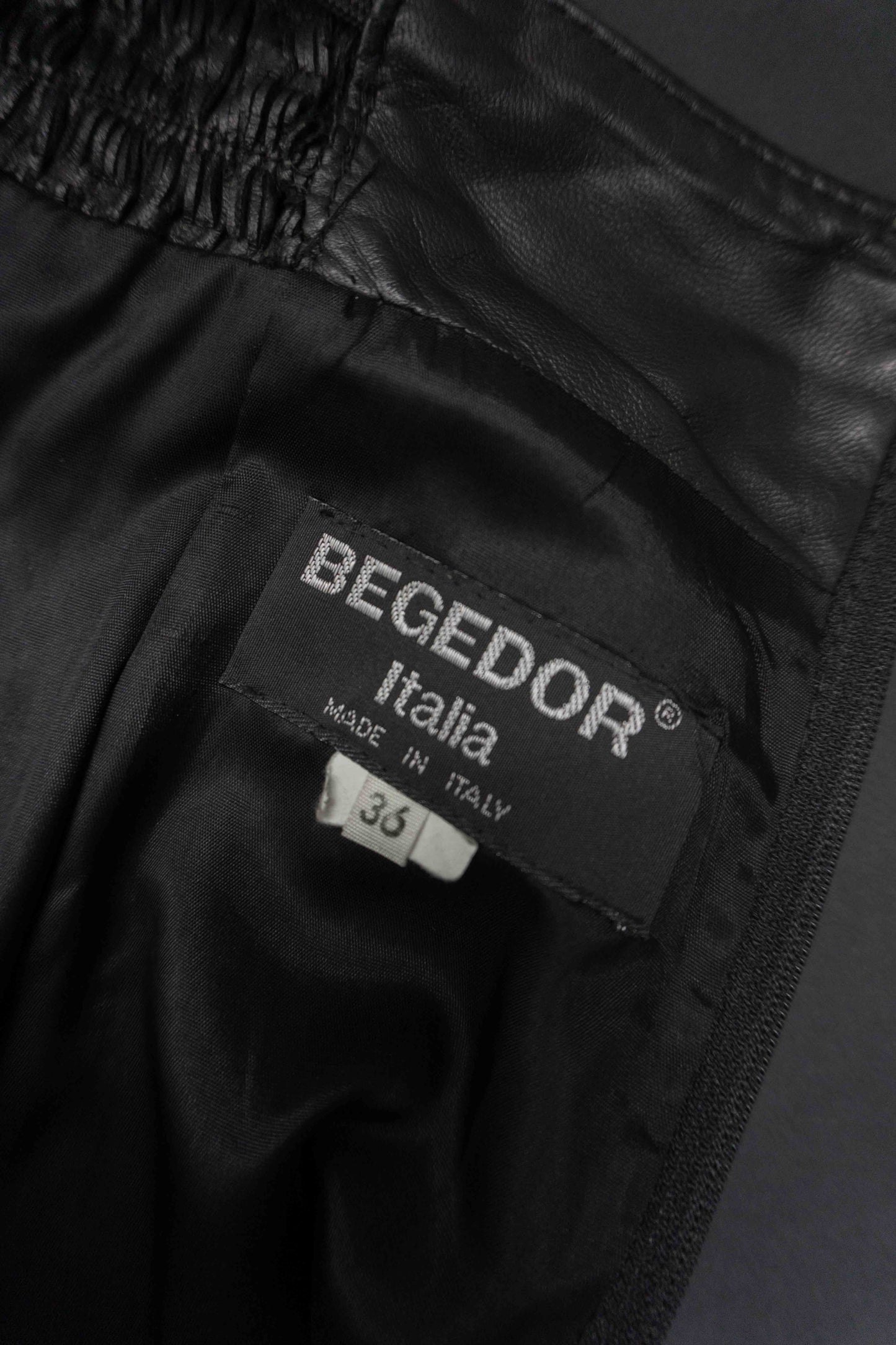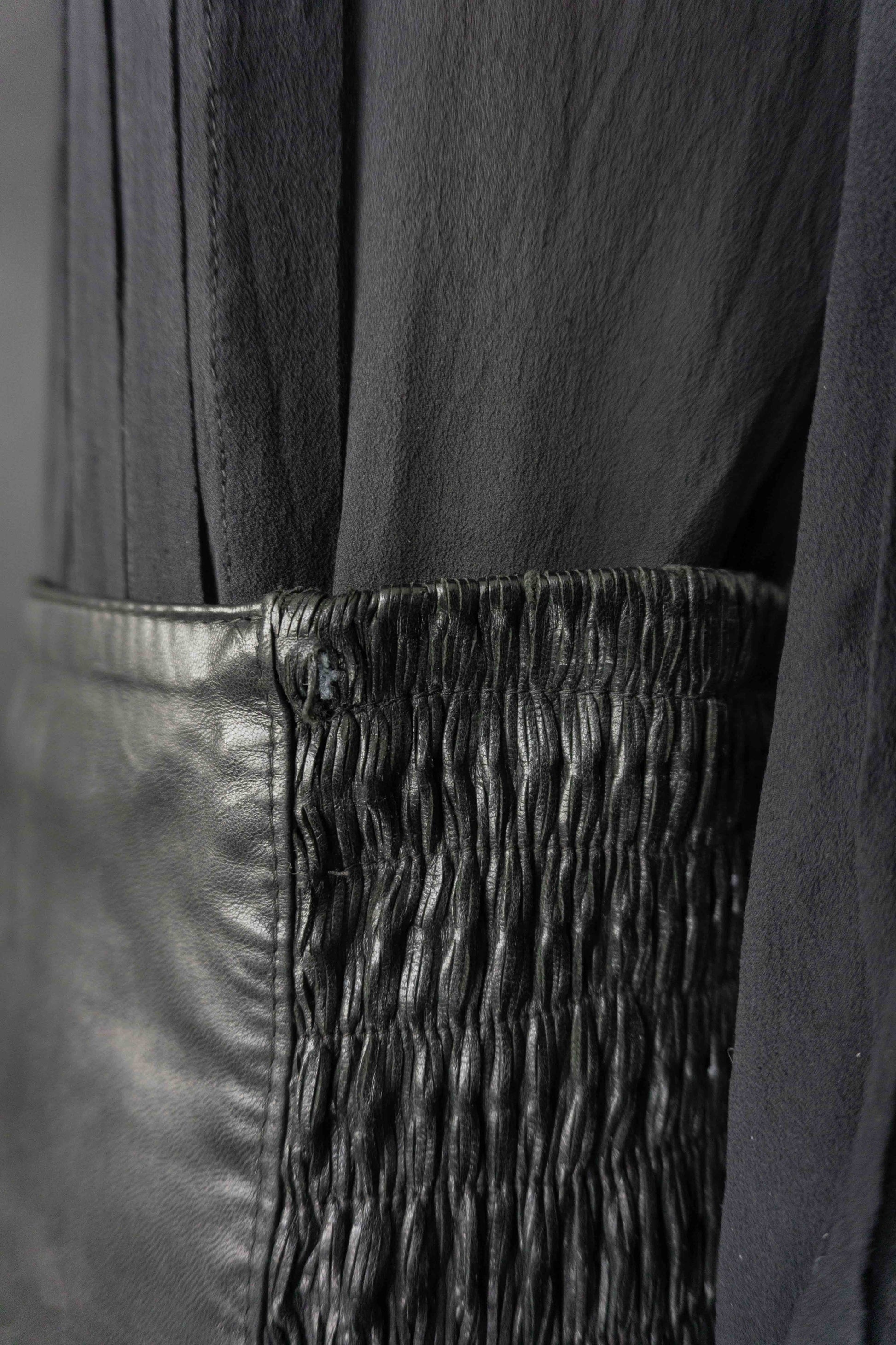 Dieser schwarze Lederrock in Mini-Länge überzeugt durch seitliche Raffdetails und einen figurbetonten Sitz. Die seitlichen Partien sind leicht elastisch, was für ein bequemes Tragegefühl sorgt. Hinten mit Reißverschluss. Am Bund zeigen sich kleine Gebrauchsspuren, bei denen sich das Leder etwas löst – im getragenen Zustand kaum sichtbar. Deshalb zum günstigen Preis. Für Liebhaber*innen von authentischem Vintage mit Charakter.