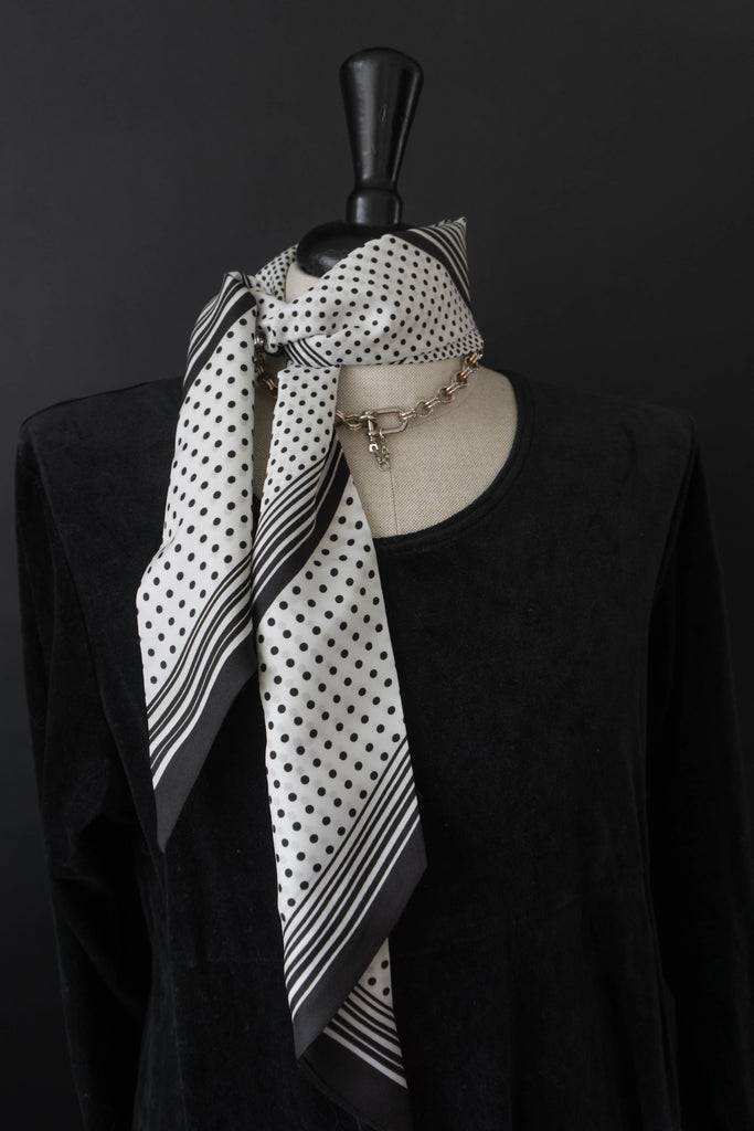 Schöner Schal mit Schwarz Weißem Polkadot Print.