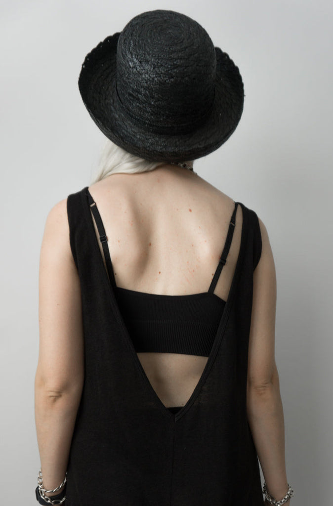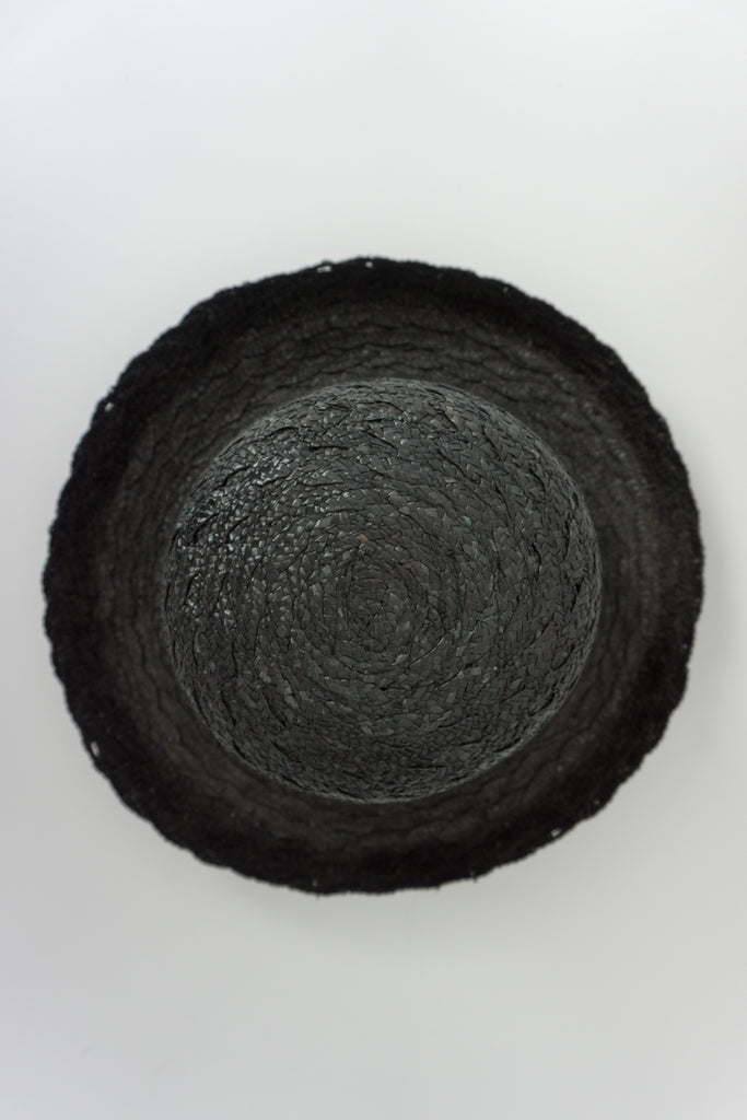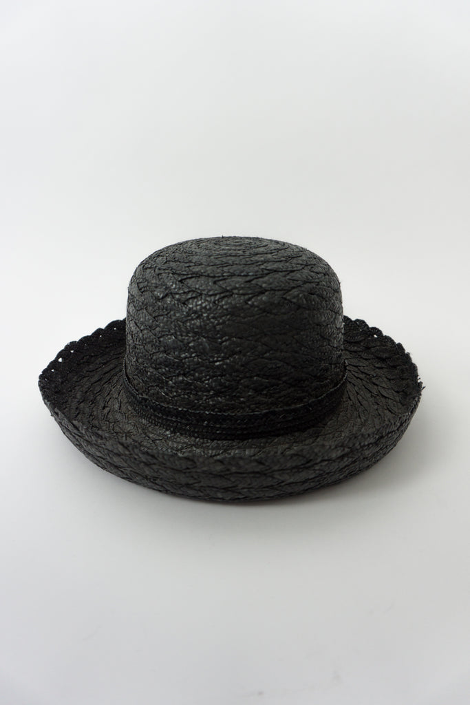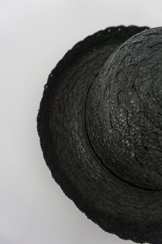 Schwarzer Strohhut in wunderbarem Zustand und ausgefallenem Design.