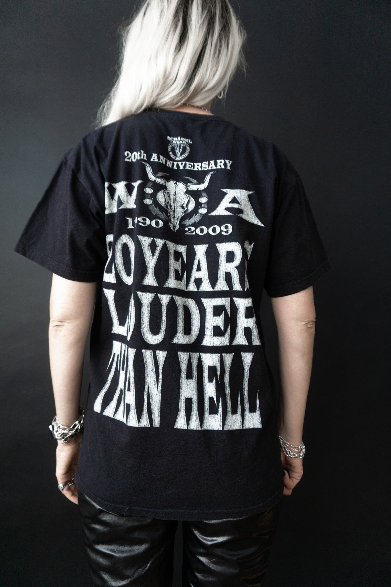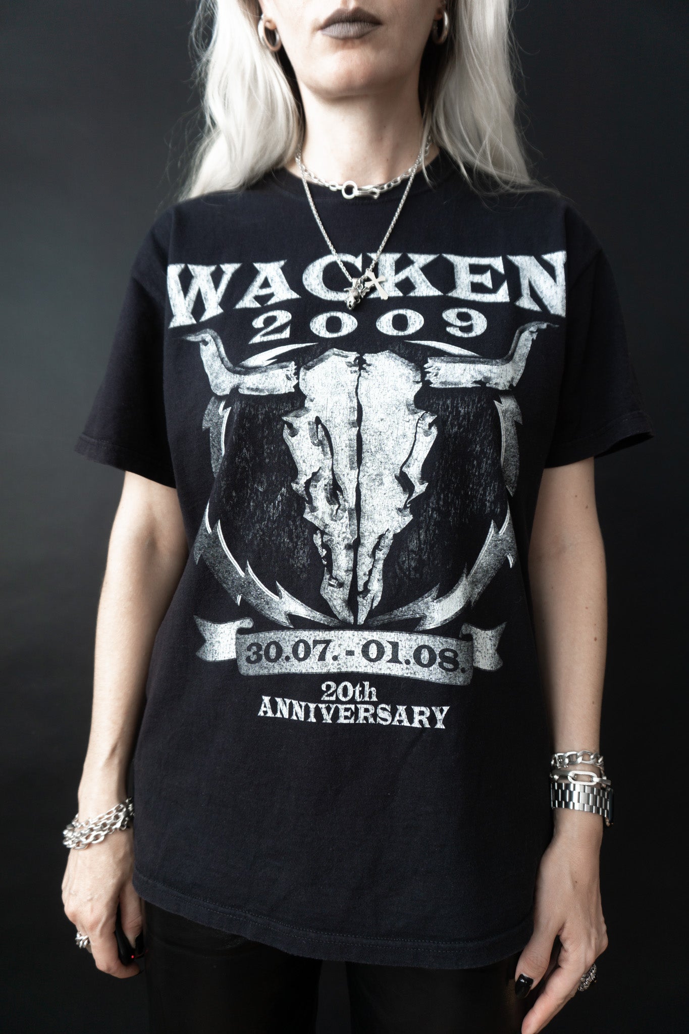 Schwarzes WACKEN Jubiläums T-Shirt von 2009 mit Print auf der Vorder- und Rückseite.