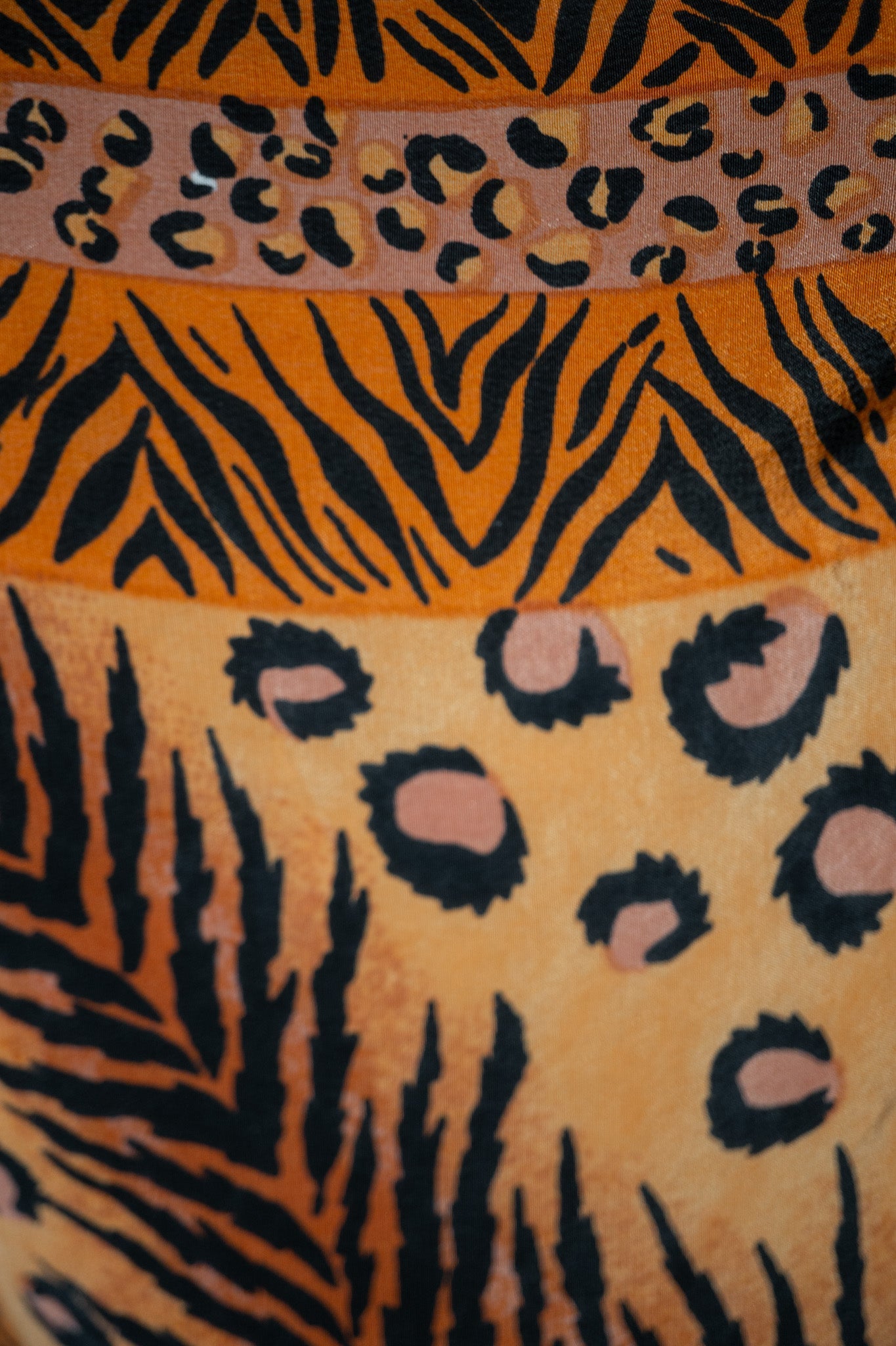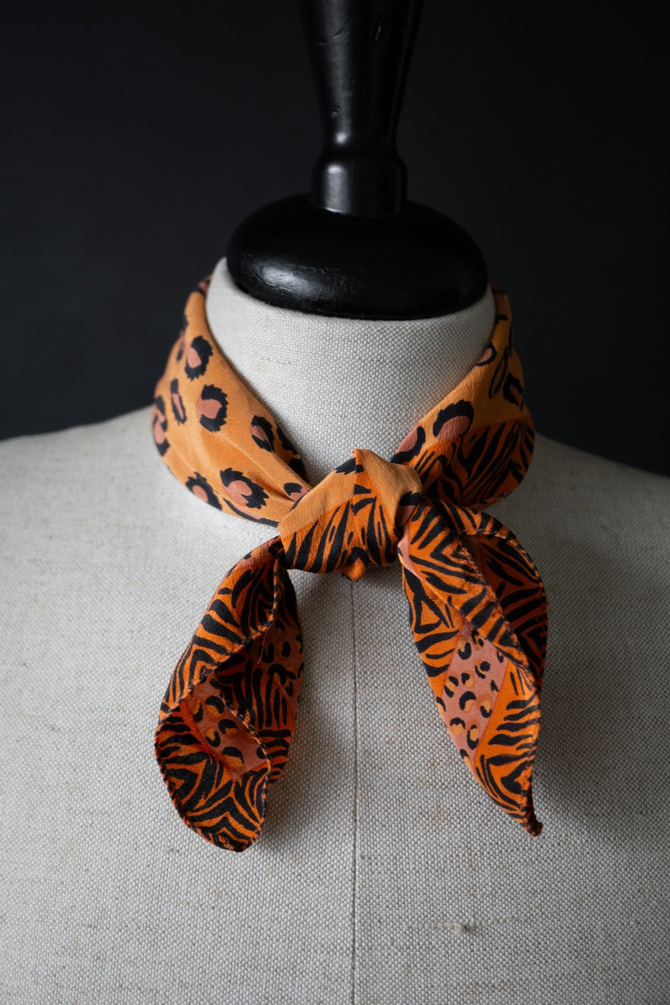 Süßes quadratisches Tuch aus reiner Seide mit Animalprint. Perfektes Styling piece und auch toll als Geschenk.