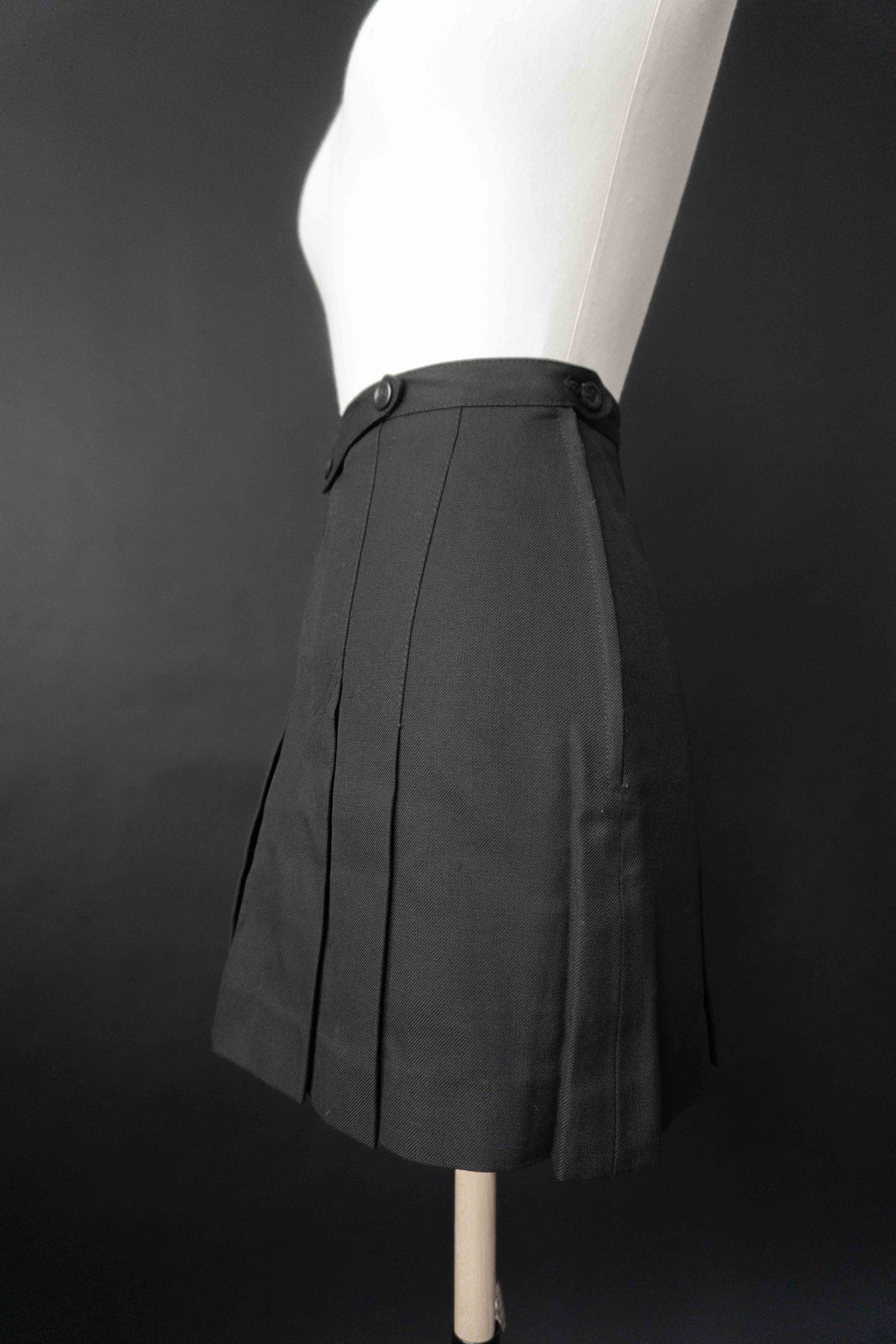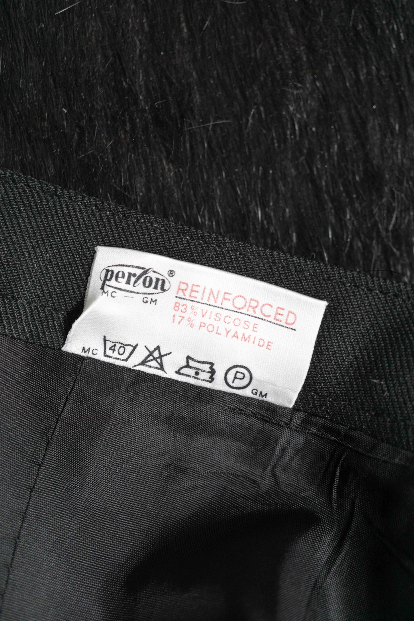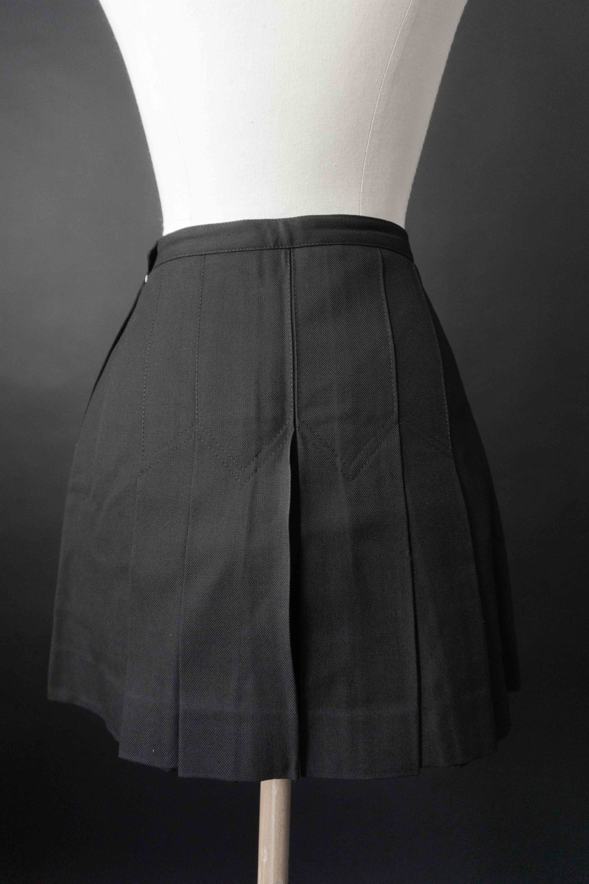 Ein echtes Highlight aus den 70er Jahren: Dieser Vintage Faltenrock von Perlon begeistert mit perfekter Faltenführung, klarer Nahtstruktur und einem seitlichen Reißverschluss. Der strukturierte Stoff verleiht dem Minirock ein klares Retro-Flair – feminin, verspielt, aber auch wunderbar kombinierbar mit Gothic oder Corporate Vintage Styles.