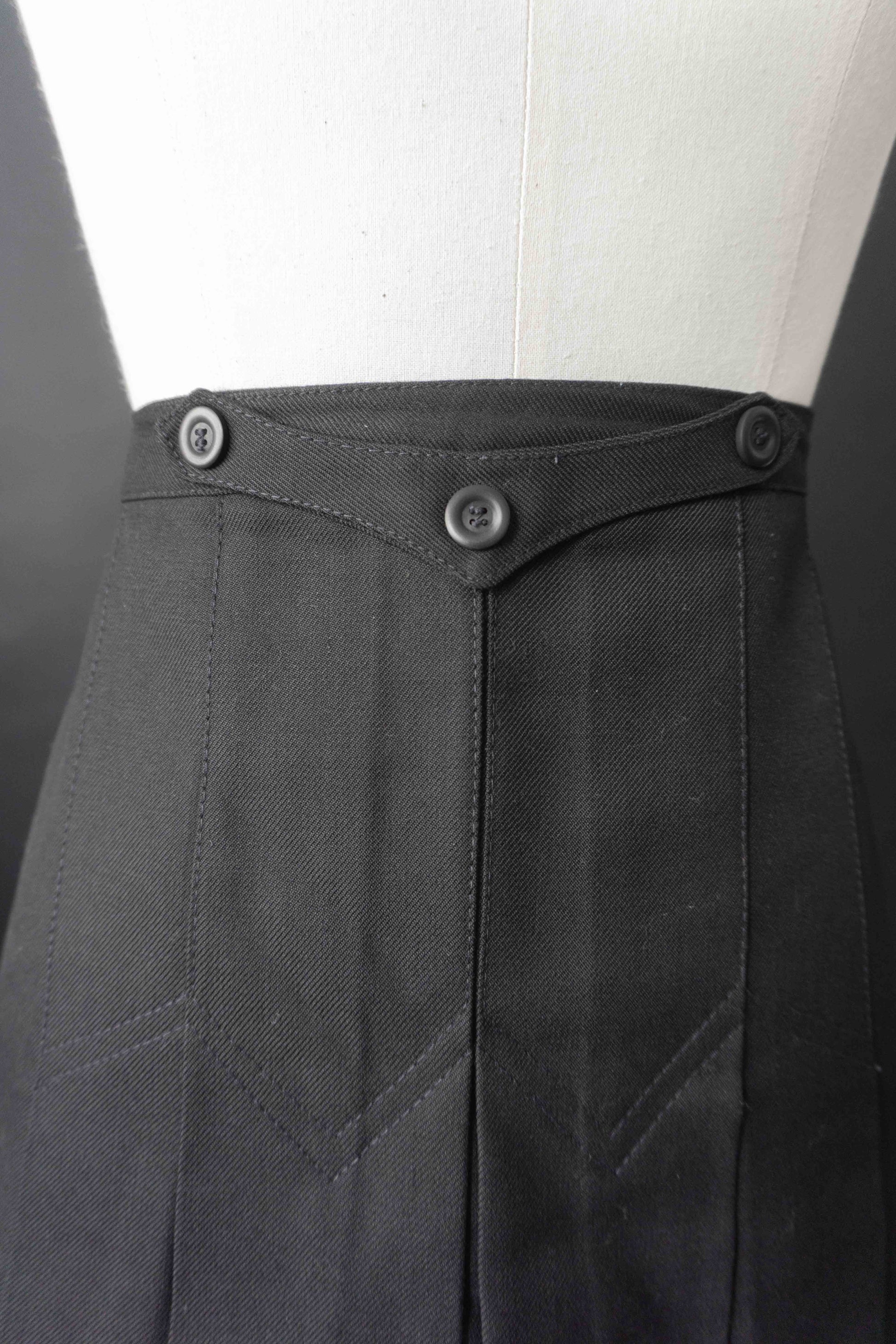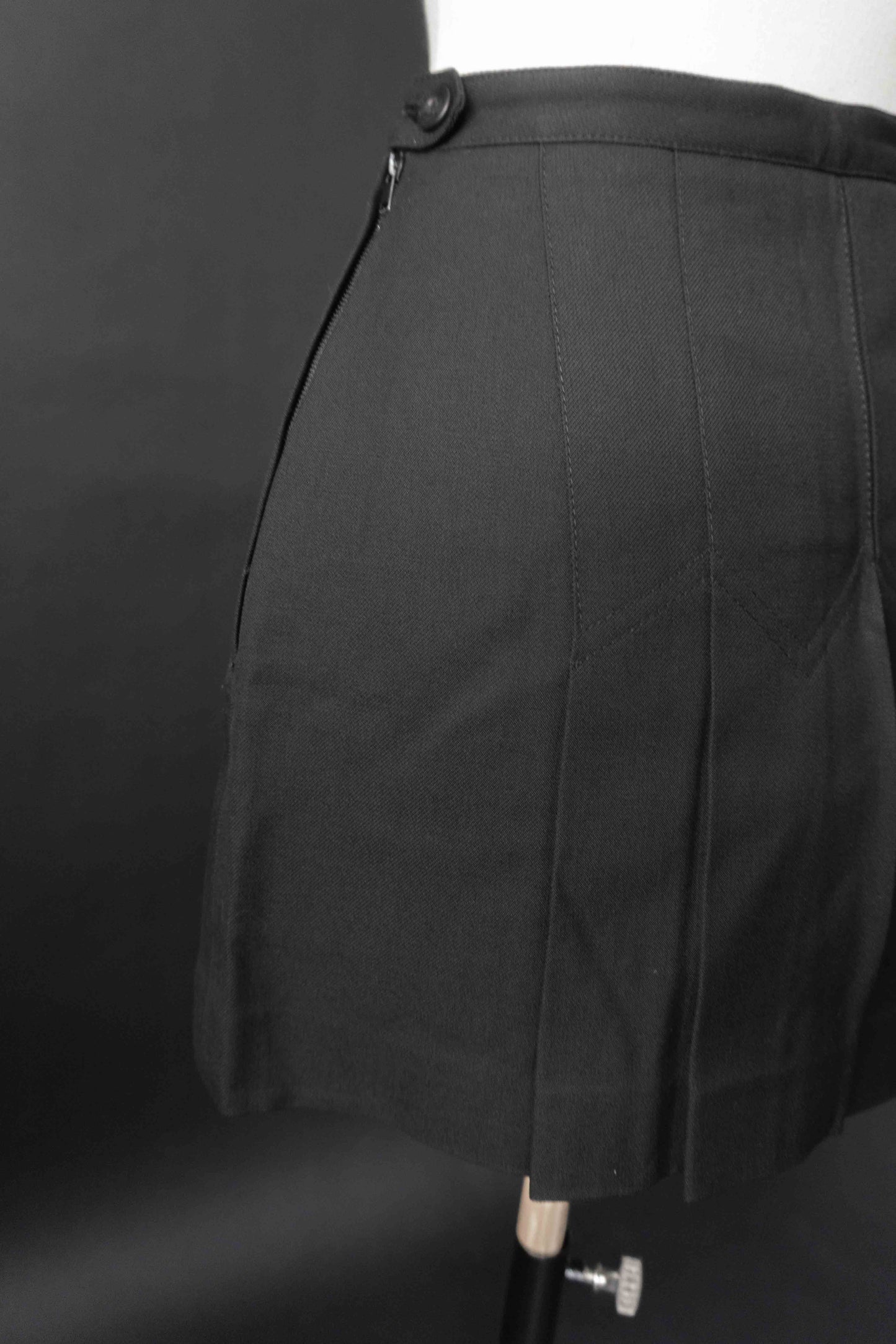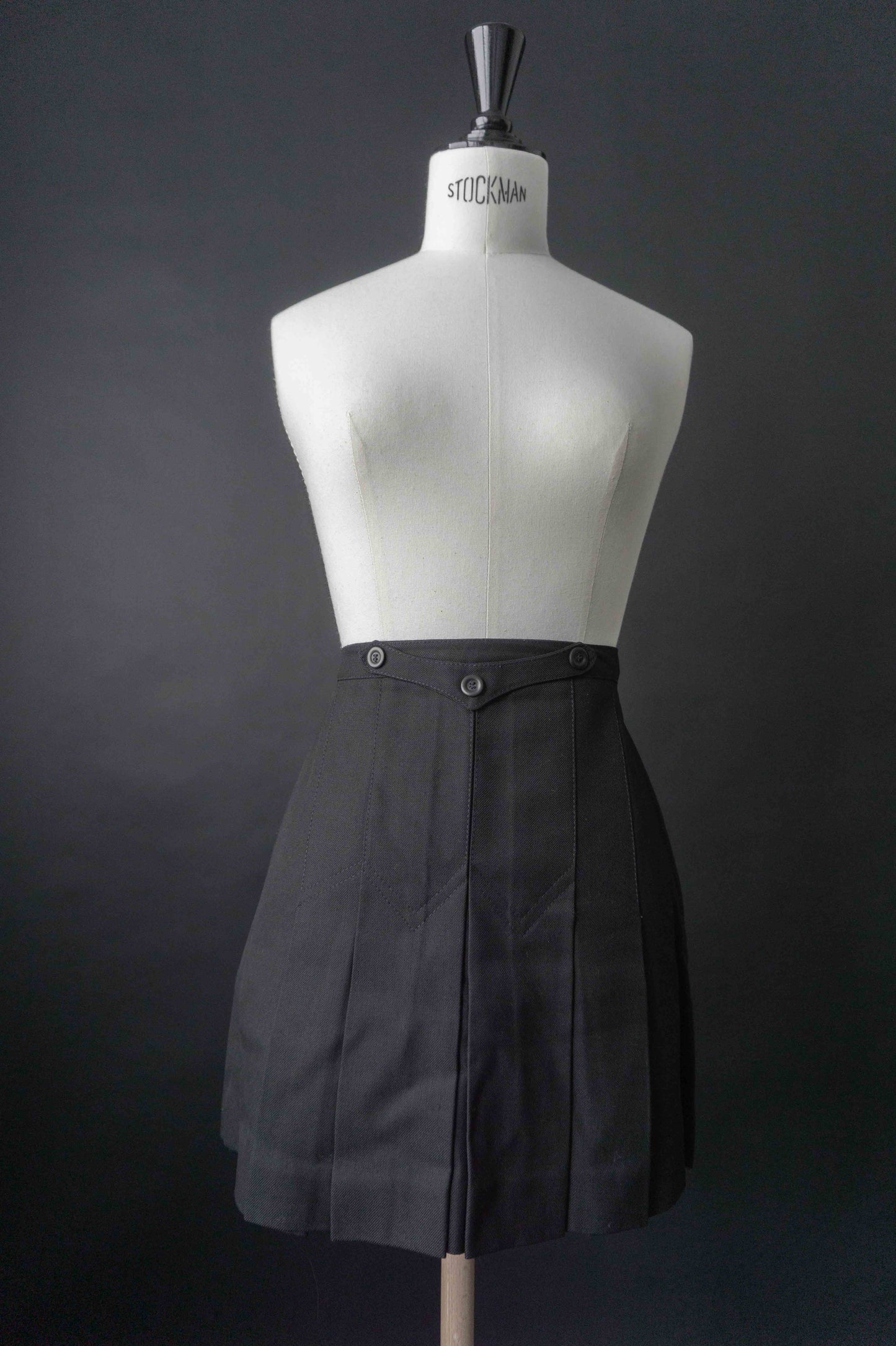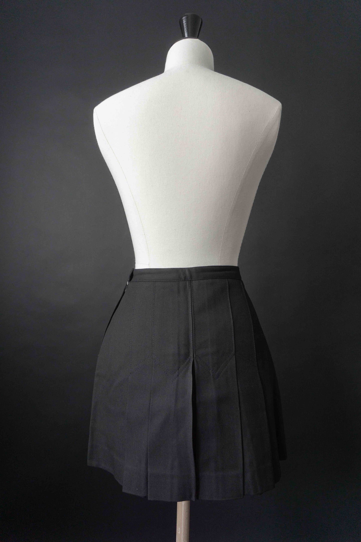Ein echtes Highlight aus den 70er Jahren: Dieser Vintage Faltenrock von Perlon begeistert mit perfekter Faltenführung, klarer Nahtstruktur und einem seitlichen Reißverschluss. Der strukturierte Stoff verleiht dem Minirock ein klares Retro-Flair – feminin, verspielt, aber auch wunderbar kombinierbar mit Gothic oder Corporate Vintage Styles.