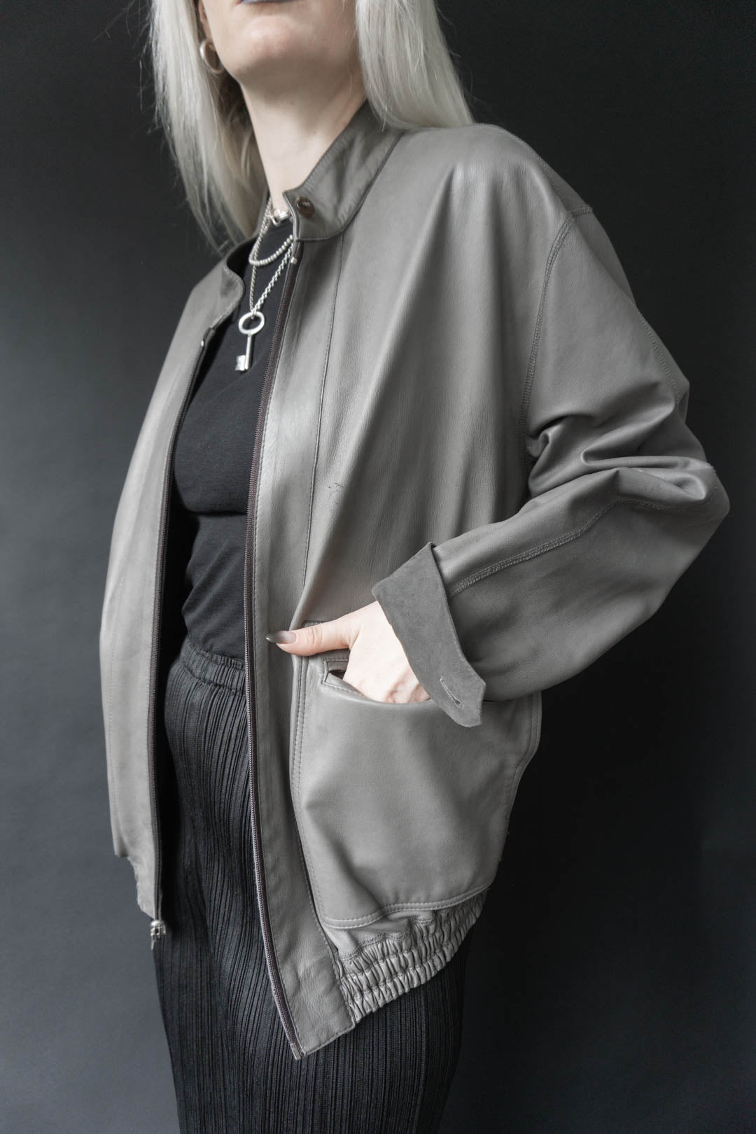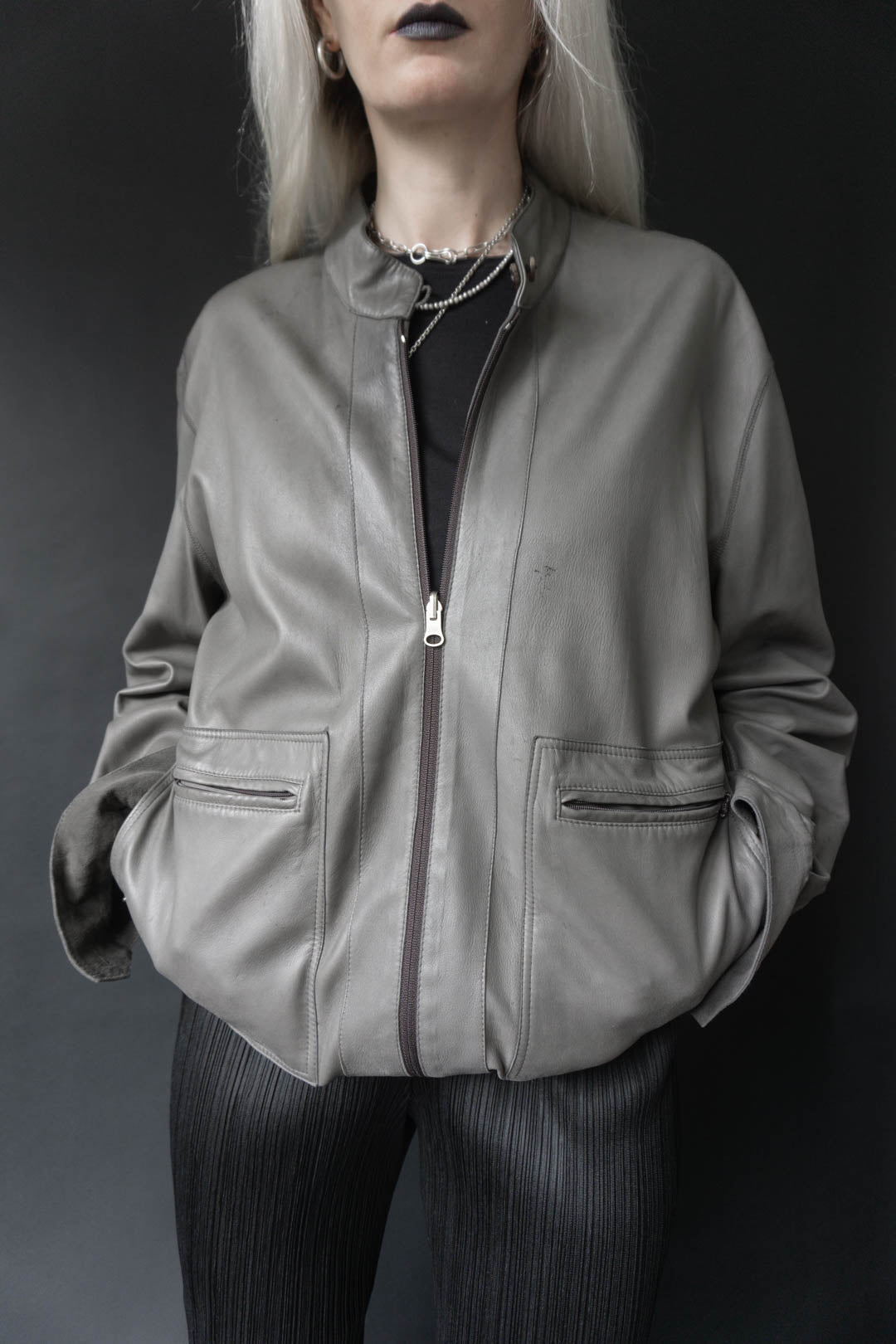 Wendbare Lederjacke! Butterweiches Ziegenleder in Luxusqualität (ähnelt Brunello Cuccinelli). Leichte Patina auf der Glattlederseit. Elastischer Bund, aufgesetzte Taschen und super softer Fall.